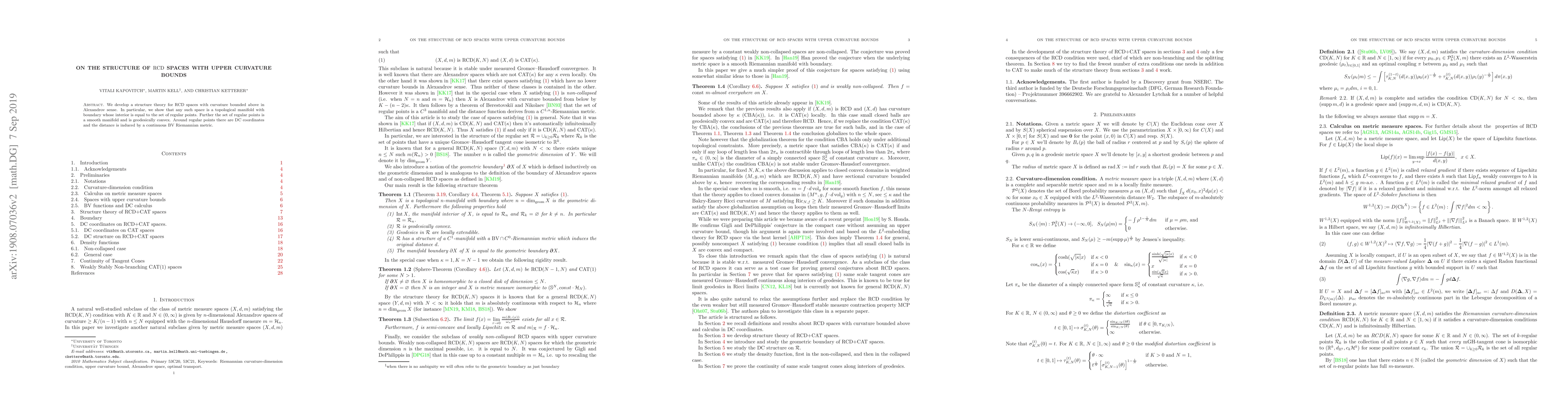 The paper presents a structure theory for RCD spaces with upper curvature bounds, showing they are topological manifolds with boundary, where the interior is the set of regular points. These regular points form a smooth manifold, geodesically convex, and admit DC coordinates with a continuous BV Riemannian metric inducing the distance.