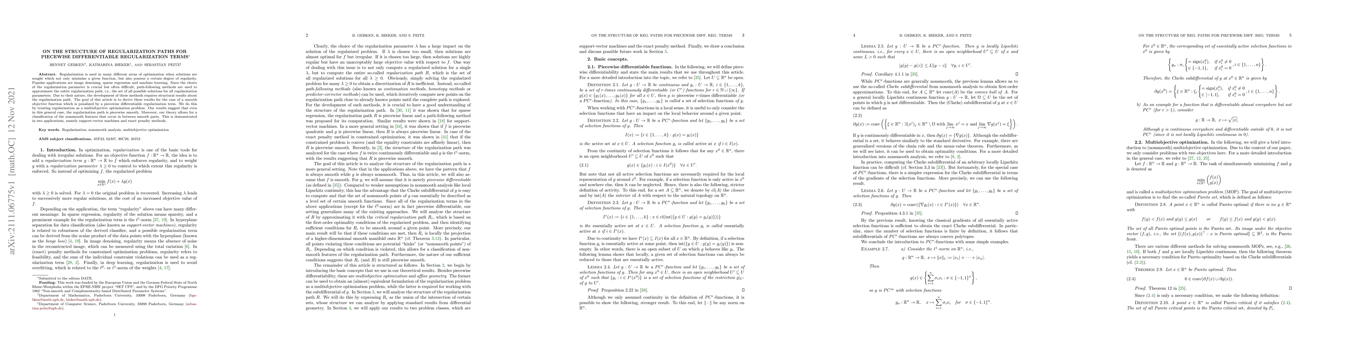 This paper derives structural results for regularization paths involving piecewise differentiable regularization terms, showing that the path remains piecewise smooth. It treats regularization as a multiobjective optimization problem and classifies nonsmooth features, demonstrated through applications in support-vector machines and exact penalty methods.