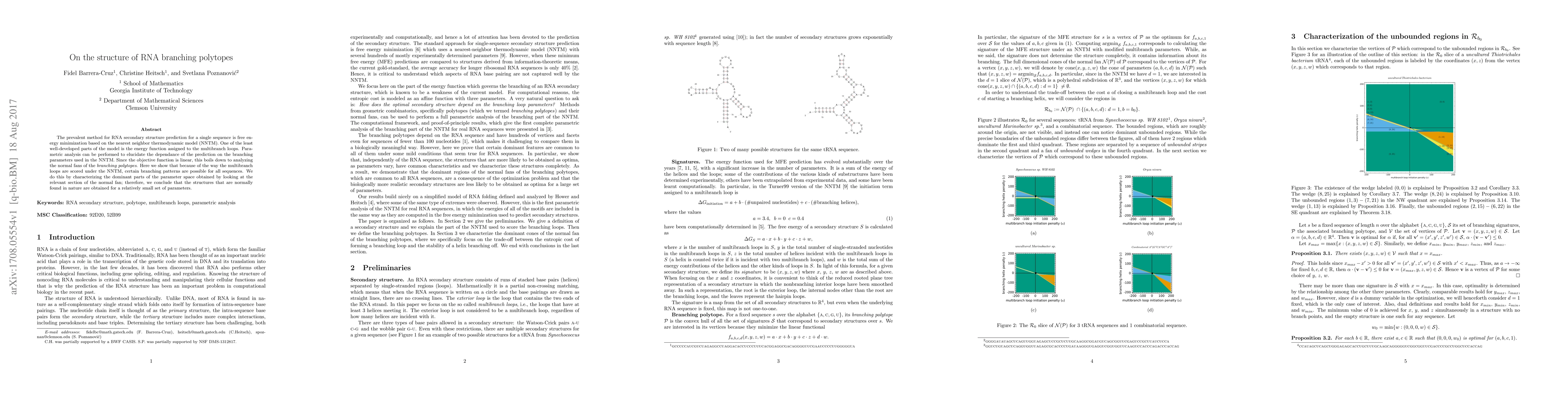 This paper explores the structure of RNA branching polytopes within the context of RNA secondary structure prediction using the nearest neighbor thermodynamic model. It reveals that certain RNA branching patterns are universally possible due to the scoring of multibranch loops, thereby identifying a small parameter set that yields naturally occurring RNA structures.