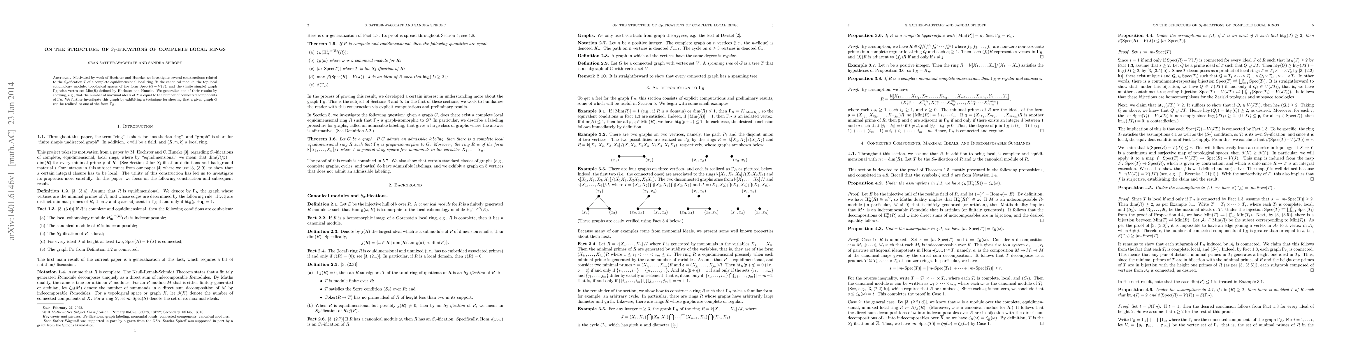 This paper investigates the structure of $S_2$-ifications of complete local rings, generalizing a result from Hochster and Huneke and introducing techniques to analyze graphs related to these structures.