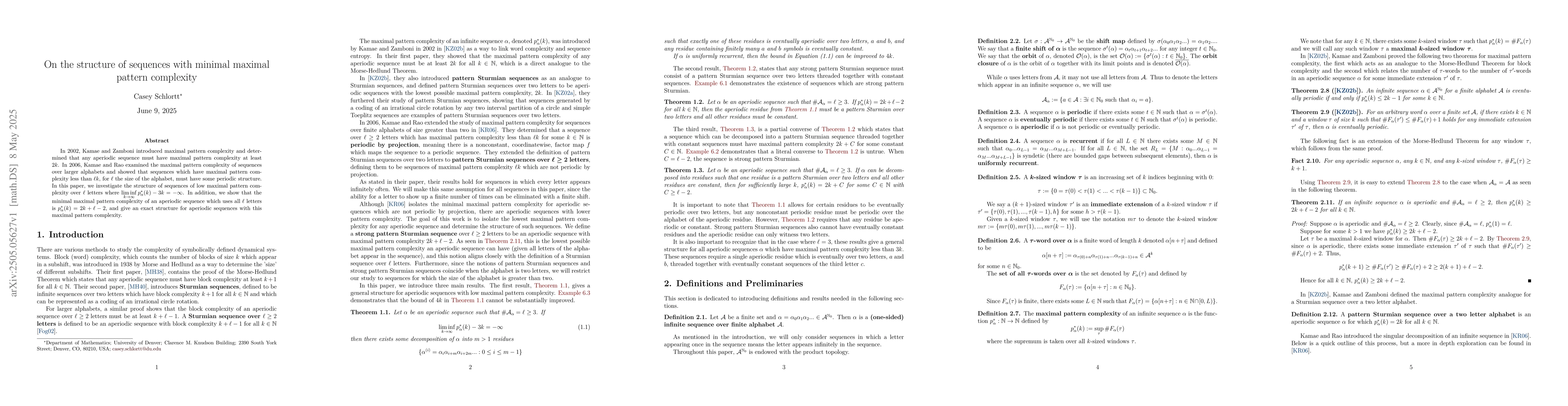 The paper establishes the exact structure of aperiodic sequences with minimal maximal pattern complexity, providing a deeper understanding of pattern complexity in sequences.