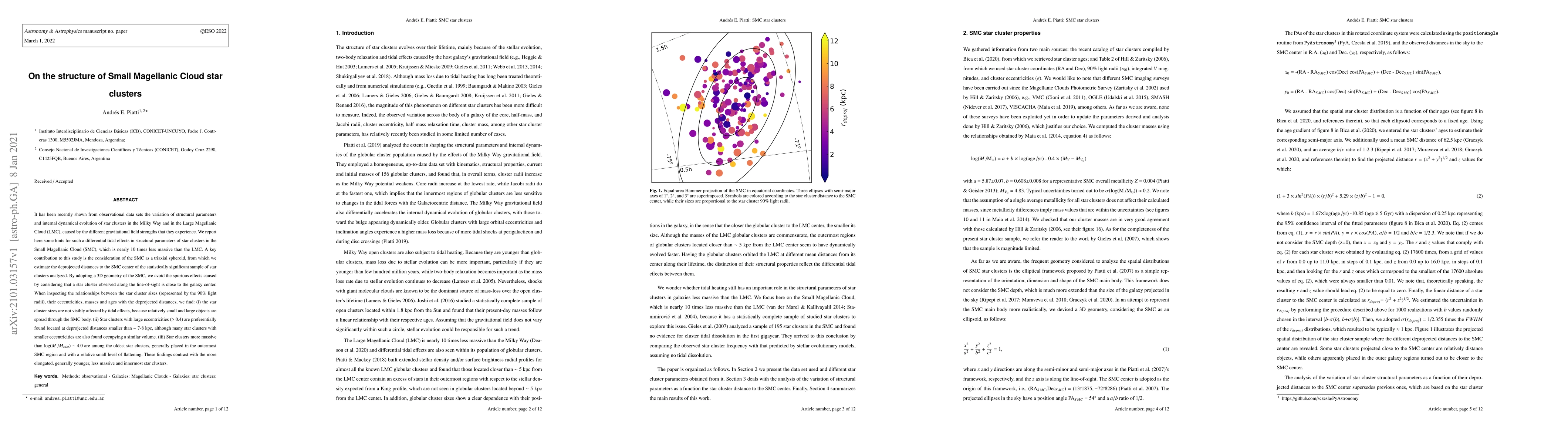 This study investigates the structural parameters and internal dynamics of star clusters in the Small Magellanic Cloud (SMC), revealing that star cluster sizes are not significantly affected by tidal forces, while clusters with larger eccentricities tend to be closer to the SMC center. Older, more massive clusters are found in the outer regions, contrasting with younger, less massive, and more elongated clusters located closer to the SMC center.
