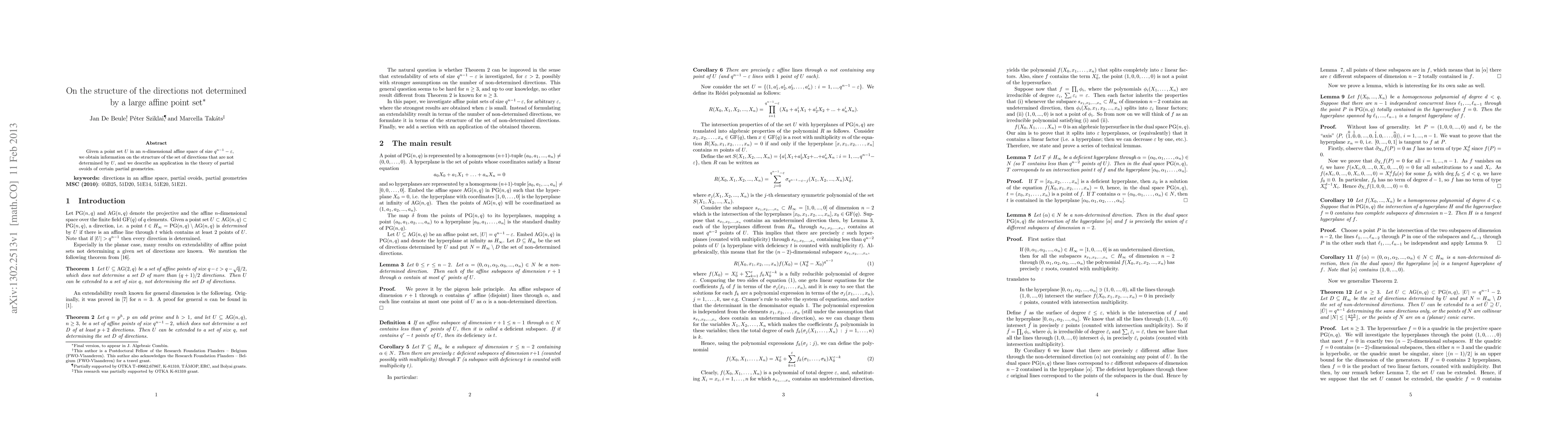Given a point set $U$ in an $n$-dimensional affine space of size $q^{n-1}-\varepsilon$, we obtain information on the structure of the set of directions that are not determined by $U$, and we describe an application in the theory of partial ovoids of certain partial geometries.