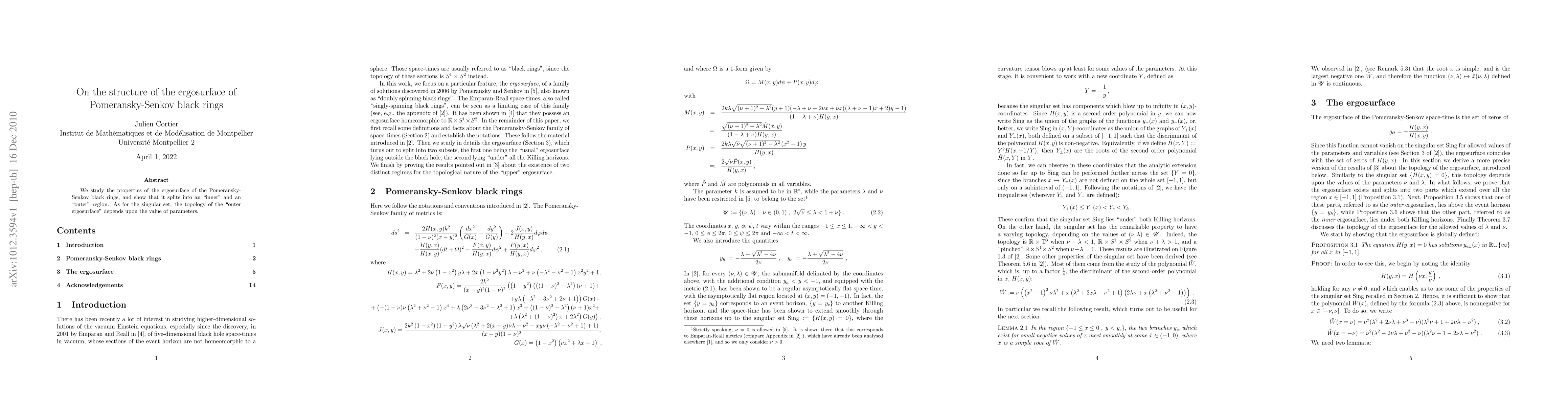 This paper investigates the ergosurface of Pomeransky-Senkov black rings, demonstrating that it divides into distinct "inner" and "outer" regions, with the topology of the "outer ergosurface" varying based on parameter values.