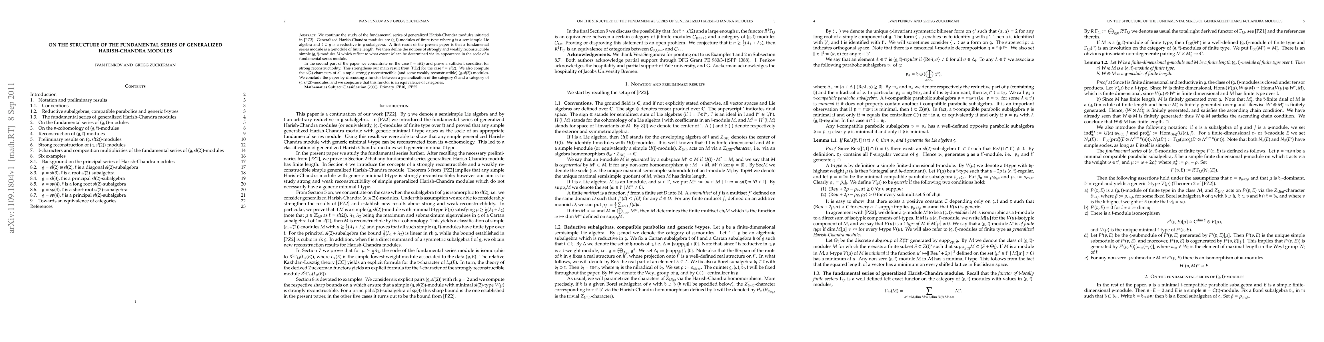 We continue the study of the fundamental series of generalized Harish-Chandra modules initiated in [PZ2]. Generalized Harish-Chandra modules are (g,k)-modules of finite type where g is a semisimple Lie algebra and k \subset g is a reductive in g subalgebra. A first result of the present paper is that a fundamental series module is a g-module of finite length. We then define the notions of strongly and weakly reconstructible simple (g,k)-modules M which reflect to what extent M can be determined via its appearance in the socle of a fundamental series module. In the second part of the paper we concentrate on the case k \simeq sl(2) and prove a sufficient condition for strong reconstructibility. This strengthens our main result from [PZ2] for the case k = sl(2). We also compute the sl(2)-characters of all simple strongly reconstructible (and some weakly reconstructible) (g,sl(2))-modules. We conclude the paper by discussing a functor between a generalization of the category O and a category of (g,sl(2))-modules, and we conjecture that this functor is an equivalence of categories.