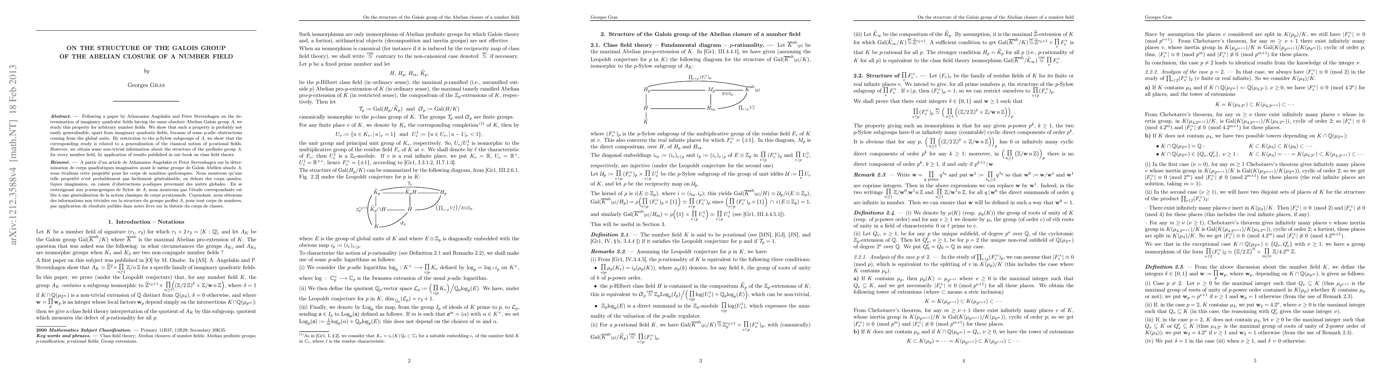 This paper investigates the structure of the Galois group of the Abelian closure of arbitrary number fields, revealing that the property of having the same absolute Abelian Galois group is likely not easily generalizable beyond imaginary quadratic fields due to p-adic obstructions from global units. Despite this, it provides non-trivial insights into the profinite group structure using results from class field theory.