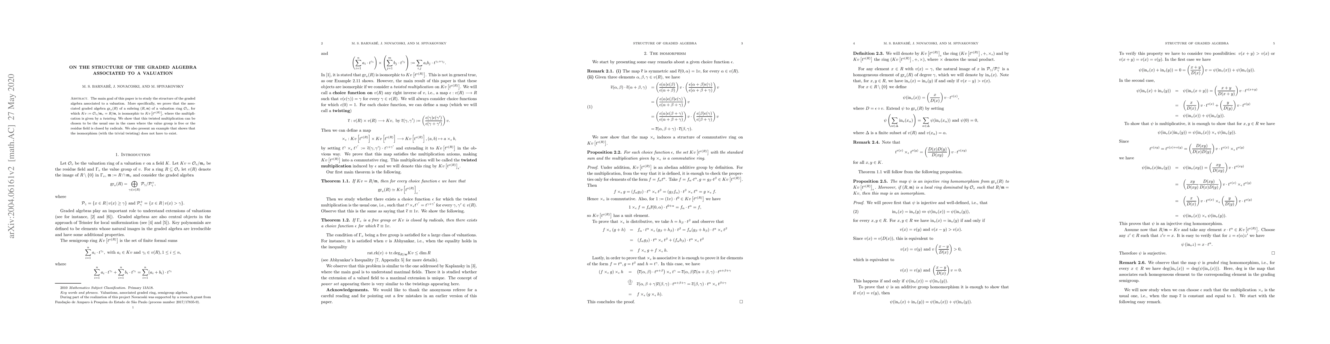 Researchers studied the structure of a graded algebra associated with a valuation, proving it is isomorphic to a specific polynomial ring under certain conditions.