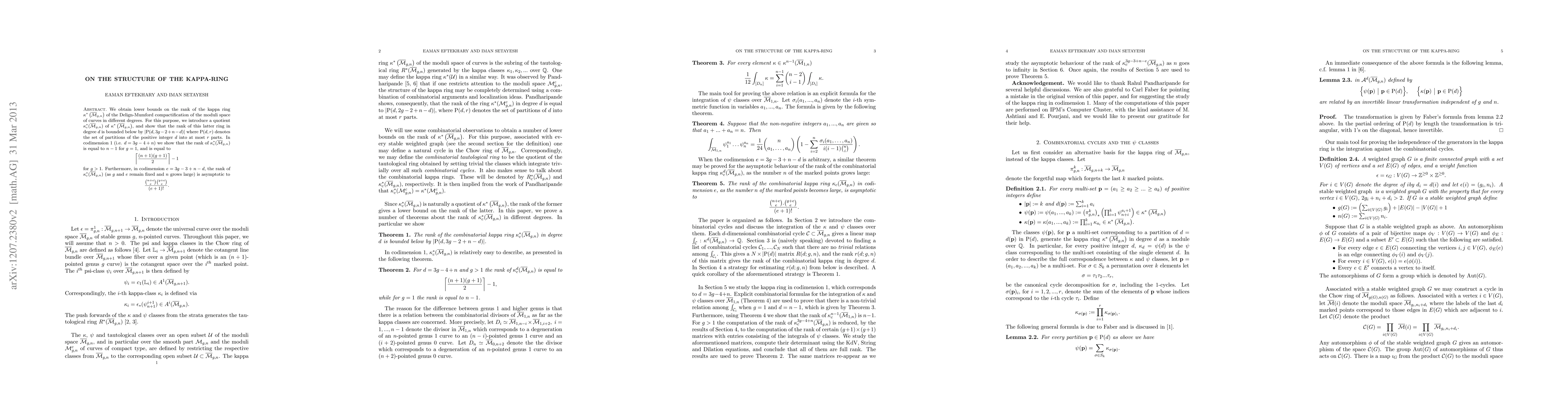 This paper establishes lower bounds for the rank of the kappa ring in different degrees of the Delign-Mumford compactification of curves, with implications for understanding the structure of the moduli space.