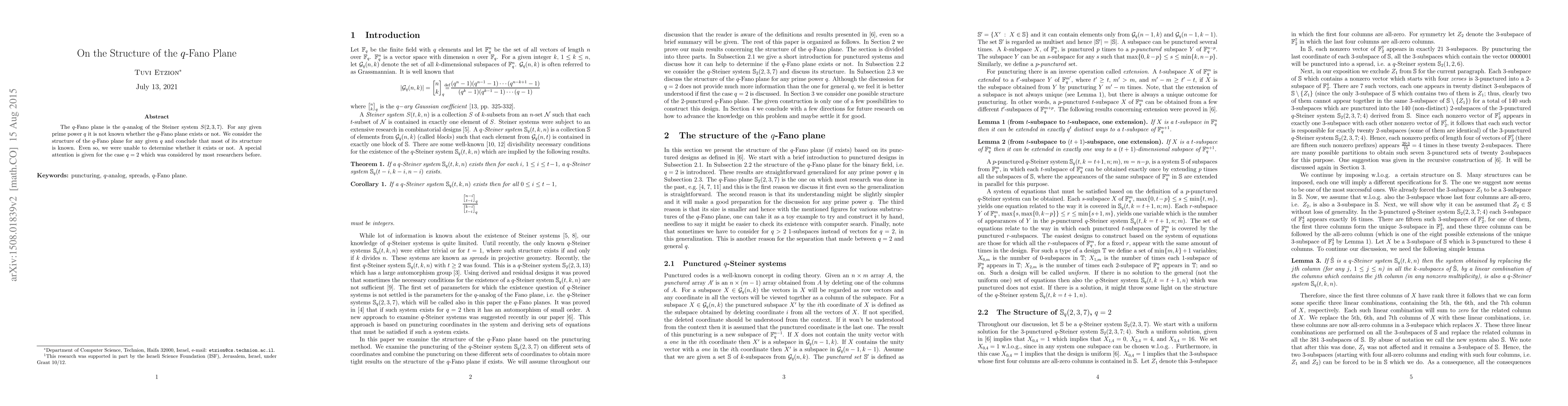 This research explores the $q$-Fano plane, a $q$-analog of the Steiner system $S(2,3,7)$. Despite not definitively proving its existence for any prime power $q$, the study outlines most of its known structural components, particularly focusing on the case when $q=2$.