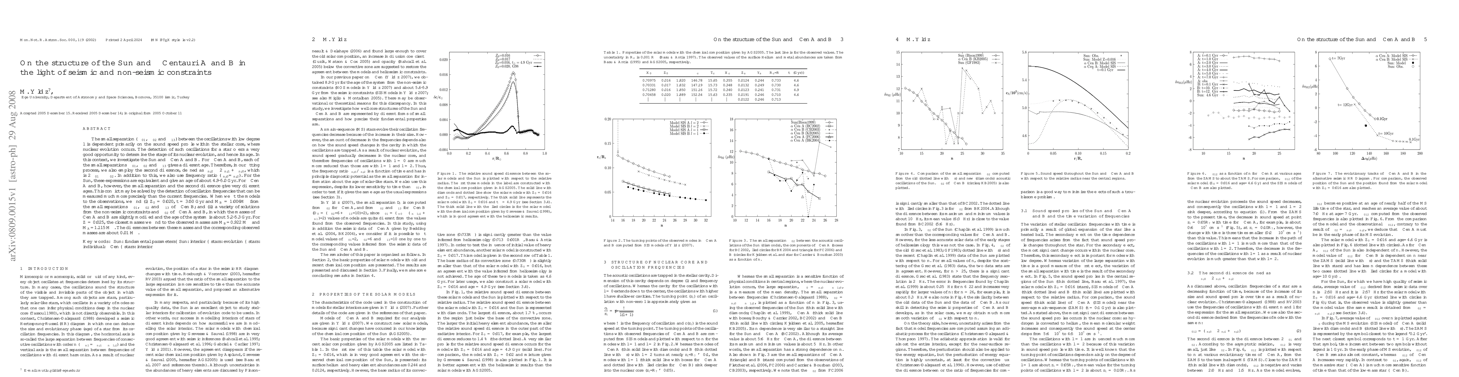 The small separation (delta nu 01, delta nu 02 and delta nu 13) between the oscillations with low degree l is dependent primarily on the sound speed profile within the stellar core, where nuclear evolution occurs. The detection of such oscillations for a star offers a very good opportunity to determine the stage of its nuclear evolution, and hence its age. In this context, we investigate the Sun and alpha Cen A and B. For alpha Cen A and B, each of the small separations delta nu 01, delta nu 02 and delta nu 13 gives a different age. Therefore, in our fitting process, we also employ the second difference, defined as nu n2 - 2 nu n1 + nu n0, which is 2 delta nu 01- delta nu 02. In addition to this, we also use frequency ratio (nu n0/ nu n2). For the Sun, these expressions areequivalent and give an age of about 4.9-5.0 Gyr. For alpha Cen A and B, however, the small separation and the second difference give very different ages. This conflict may be solved by the detection of oscillation frequencies that can be measured much more precisely than the current frequencies. When we fit the models to the observations, we find (i) Z 0=0.020, t=3.50 Gyr and M B=1.006 Msun from the small separations delta nu 01, delta nu 02 and delta nu 13 of alpha Cen B; and (ii) a variety of solutions from the non-seismic constraints and delta nu 02 of alpha Cen A and B, in which the masses of alpha Cen A and B are slightly modified and the age of the system is about 5.2-5.3 Gyr. For Z=0.025, the closest masses we find to the observed masses are M B=0.922 Msun and M A=1.115 Msun.The differences between these masses and the corresponding observed masses are about 0.01 Msun.