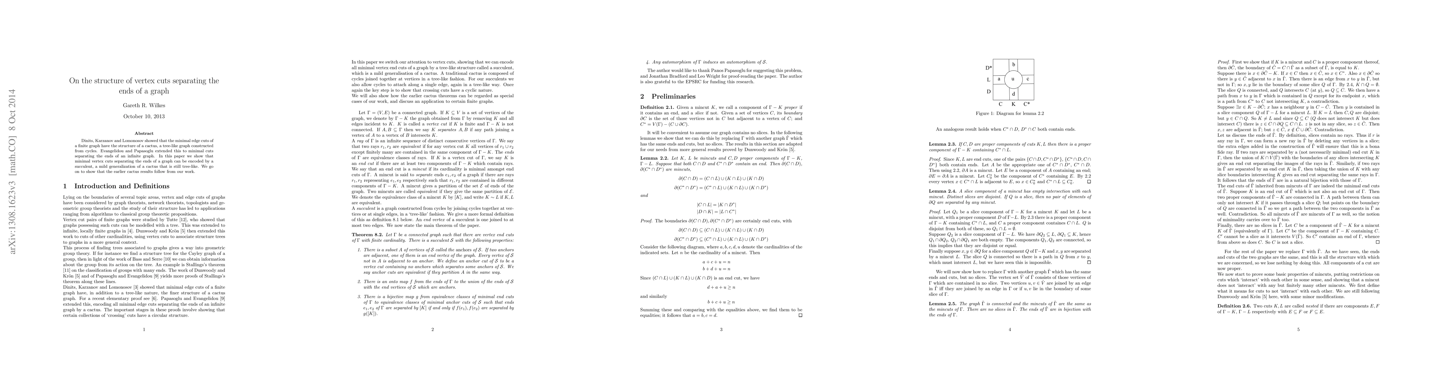 Dinits, Karzanov and Lomonosov showed that the minimal edge cuts of a finite graph have the structure of a cactus, a tree-like graph constructed from cycles. Evangelidou and Papasoglu extended this to minimal cuts separating the ends of an infinite graph. In this paper we show that minimal vertex cuts separating the ends of a graph can be encoded by a succulent, a mild generalization of a cactus that is still tree-like. We go on to show that the earlier cactus results follow from our work.