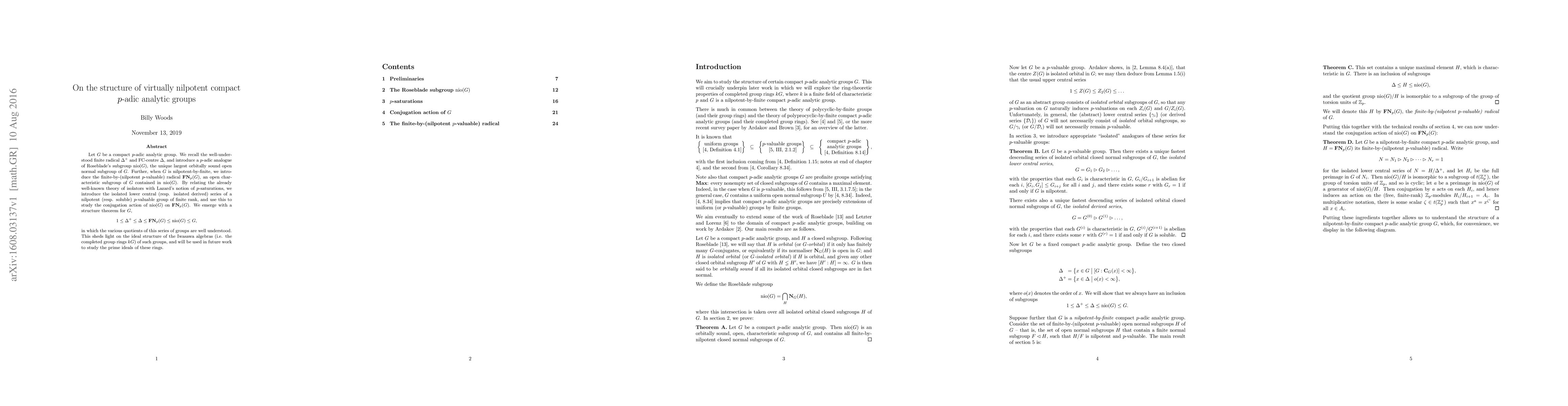 Let $G$ be a compact $p$-adic analytic group. We recall the well-understood finite radical $\Delta^+$ and FC-centre $\Delta$, and introduce a $p$-adic analogue of Roseblade's subgroup $\mathrm{nio}(G)$, the unique largest orbitally sound open normal subgroup of $G$. Further, when $G$ is nilpotent-by-finite, we introduce the finite-by-(nilpotent $p$-valuable) radical $\mathbf{FN}_p(G)$, an open characteristic subgroup of $G$ contained in $\mathrm{nio}(G)$. By relating the already well-known theory of isolators with Lazard's notion of $p$-saturations, we introduce the isolated lower central (resp. isolated derived) series of a nilpotent (resp. soluble) $p$-valuable group of finite rank, and use this to study the conjugation action of $\mathrm{nio}(G)$ on $\mathbf{FN}_p(G)$. We emerge with a structure theorem for $G$, $$1 \leq \Delta^+ \leq \Delta \leq \mathbf{FN}_p(G) \leq \mathrm{nio}(G) \leq G,$$ in which the various quotients of this series of groups are well understood. This sheds light on the ideal structure of the Iwasawa algebras (i.e. the completed group rings $kG$) of such groups, and will be used in future work to study the prime ideals of these rings.