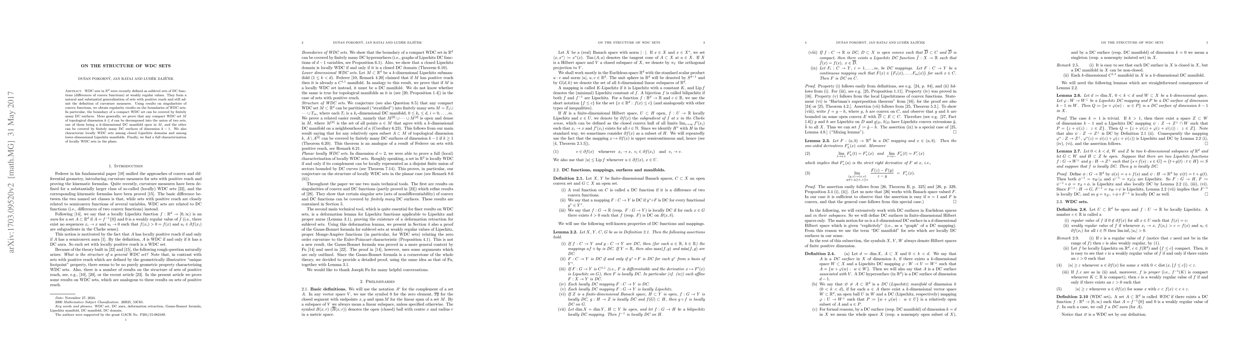 This paper explores the structure of WDC sets in ${\mathbb R}^d$, showing they can be decomposed into a $k$-dimensional DC manifold and lower-dimensional DC surfaces. It characterizes locally WDC sets among closed Lipschitz domains and lower-dimensional Lipschitz manifolds, and provides a full characterization in the plane.