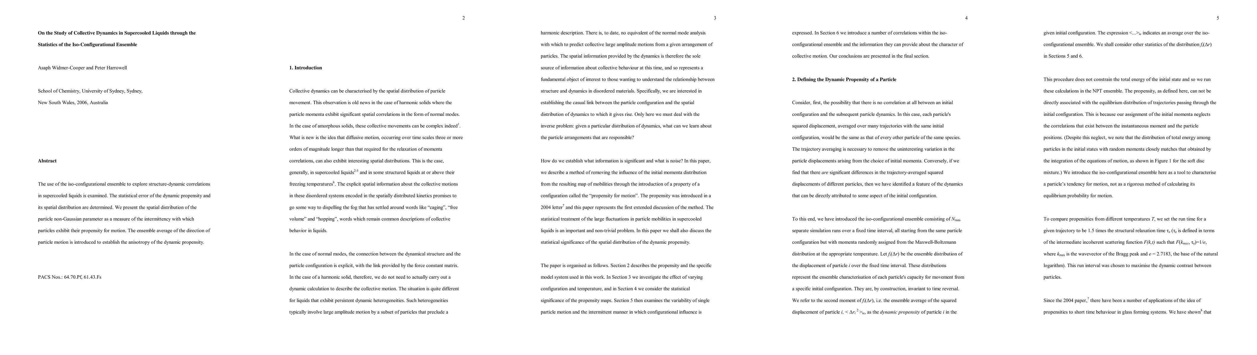 The use of the isoconfigurational ensemble to explore structure-dynamic correlations in supercooled liquids is examined. The statistical error of the dynamic propensity and its spatial distribution are determined. The authors present the spatial distribution of the particle non-Gaussian parameter as a measure of the intermittency with which particles exhibit their propensity for motion. The ensemble average of the direction of particle motion is introduced to establish the anisotropy of the dynamic propensity.