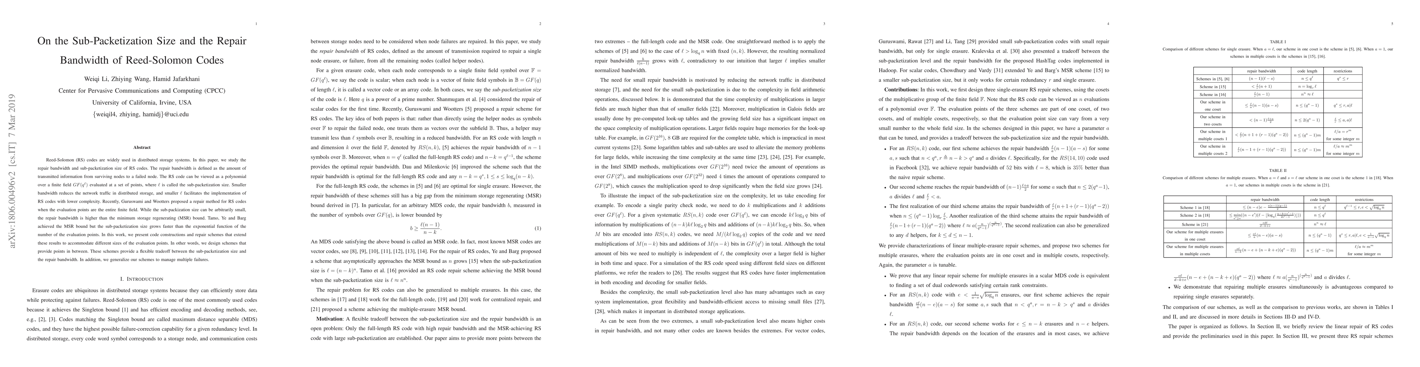 This paper explores the repair bandwidth and sub-packetization size of Reed-Solomon codes used in distributed storage systems, presenting new code constructions that offer a flexible tradeoff between these two parameters. The proposed schemes achieve better performance than existing methods, especially for intermediate sizes of evaluation points.