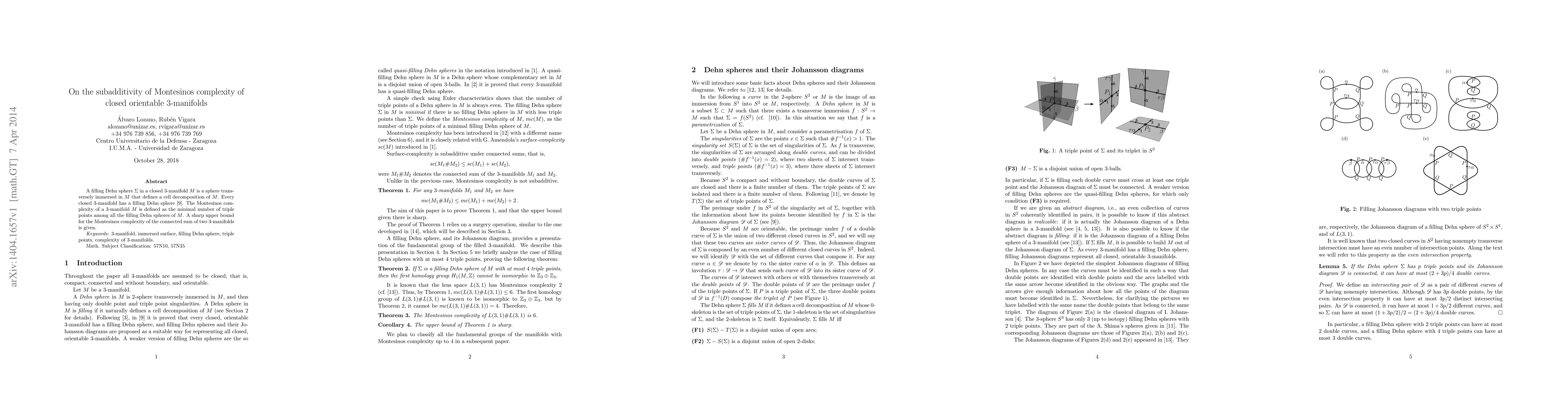 A filling Dehn sphere $\Sigma$ in a closed 3-manifold $M$ is a sphere transversely immersed in $M$ that defines a cell decomposition of $M$. Every closed 3-manifold has a filling Dehn sphere. The Montesinos complexity of a $3$-manifold $M$ is defined as the minimal number of triple points among all the filling Dehn spheres of $M$. A sharp upper bound for the Montesinos complexity of the connected sum of two 3-manifolds is given.