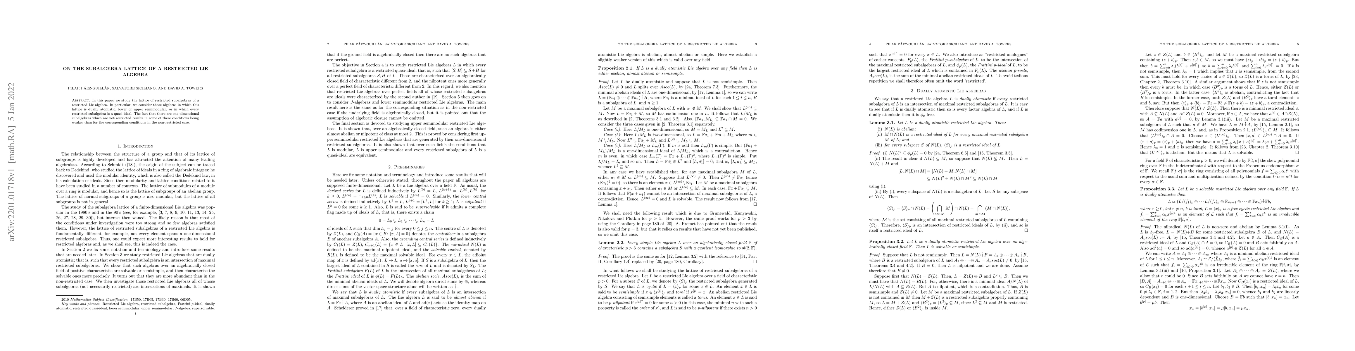 Summary: This paper investigates the lattice structure of restricted subalgebras within a restricted Lie algebra, focusing on conditions where the lattice is dually atomistic, semimodular, or where all subalgebras are quasi-ideals, noting that certain conditions are less stringent due to the presence of non-restricted one-dimensional subalgebras.