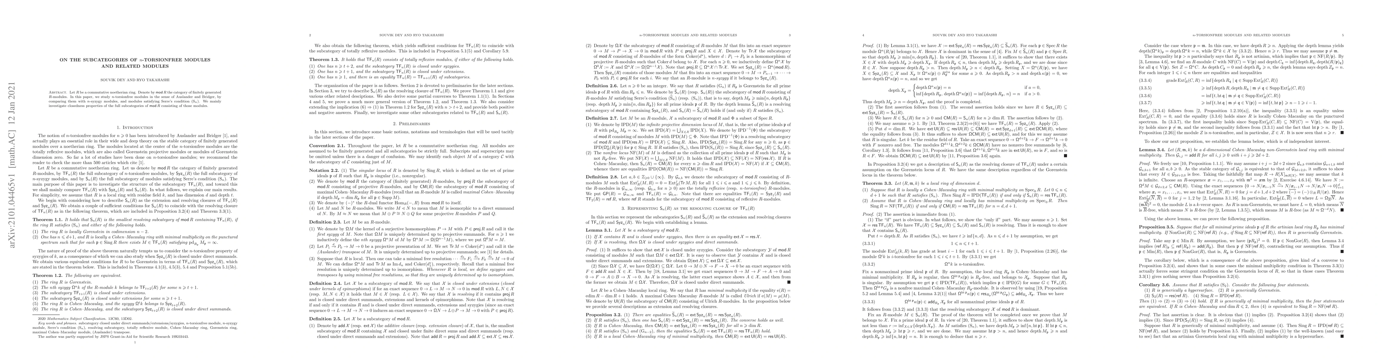 This research paper investigates properties of n-torsionfree modules in commutative noetherian rings, focusing on their relationships with n-syzygy modules and Serre's condition, with a primary emphasis on closed subcategories.