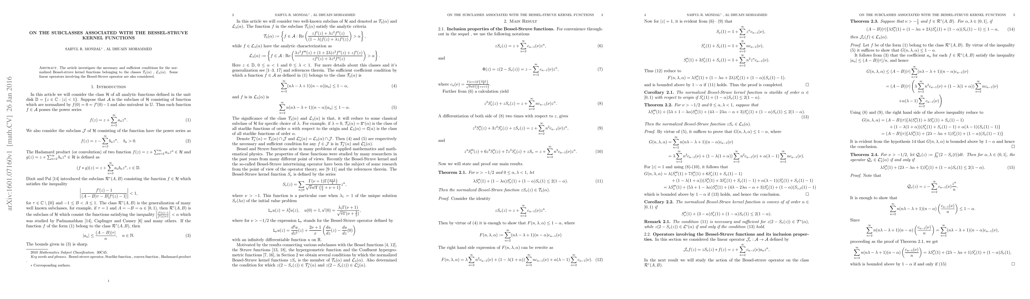 The article investigate the necessary and sufficient conditions for the normalized Bessel-struve kernel functions belonging to the classes $\mathcal{T}_\lambda(\alpha)$ , $\mathcal{L}_\lambda(\alpha)$. Some linear operators involving the Bessel-Struve operator are also considered.