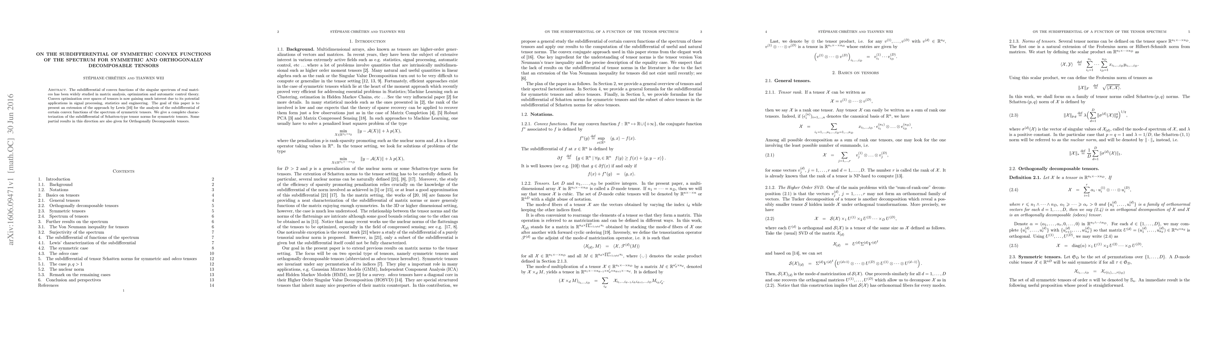 This paper extends the analysis of the subdifferential of convex functions related to the spectrum of symmetric tensors, building on Lewis's work. It provides a complete characterization of the subdifferential for Schatten-type tensor norms and offers partial results for Orthogonally Decomposable tensors, with potential applications in signal processing, statistics, and engineering.