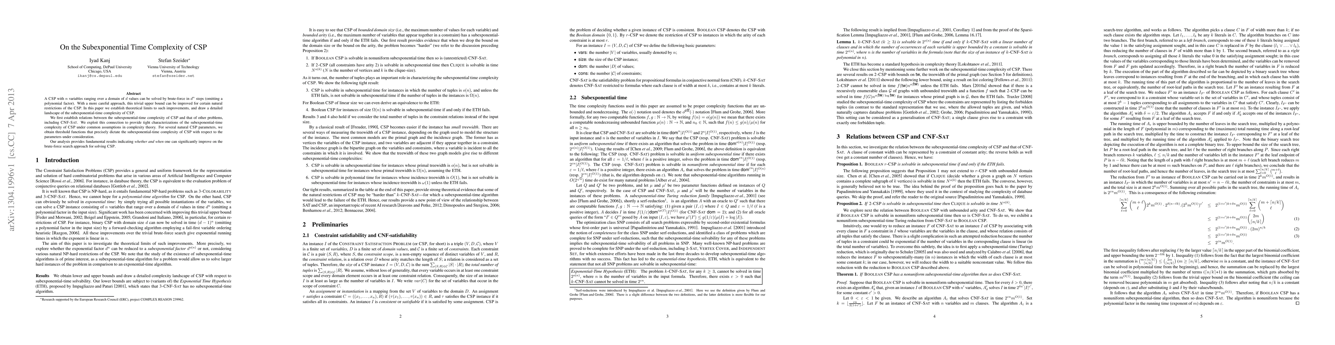 This paper explores the theoretical limits of subexponential-time algorithms for solving Constraint Satisfaction Problems (CSP), establishing connections between CSP and CNF-Sat. It provides tight characterizations and threshold functions for the subexponential complexity of CSP under various parameters.