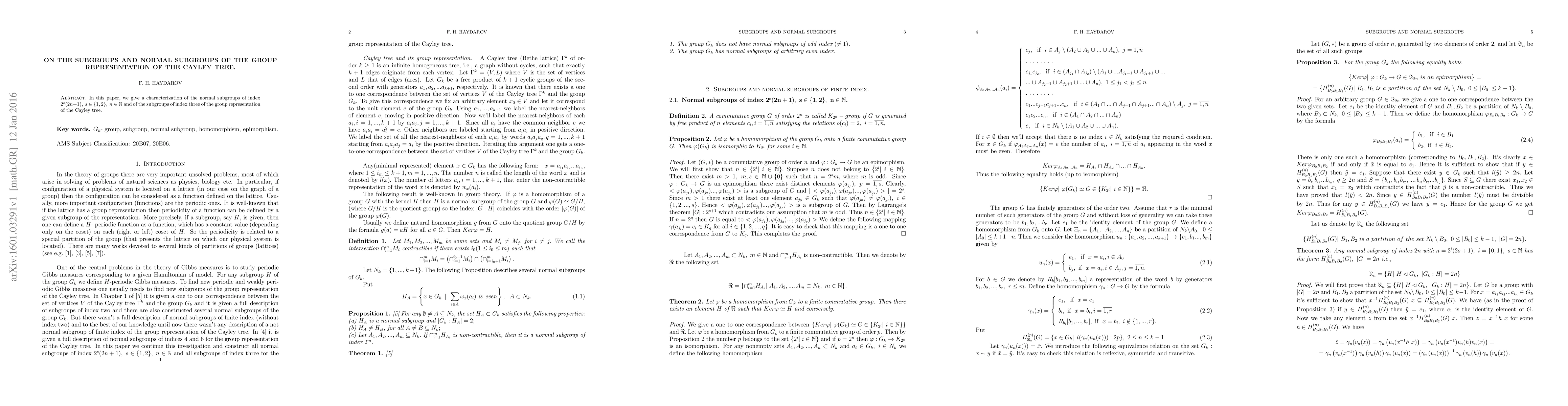 This paper characterizes the normal subgroups of index $2^{s}(2n+1)$ for $s \in \{1,2\}$ and $n \in \mathbb{N}$, as well as subgroups of index three, in the group representation of the Cayley tree.