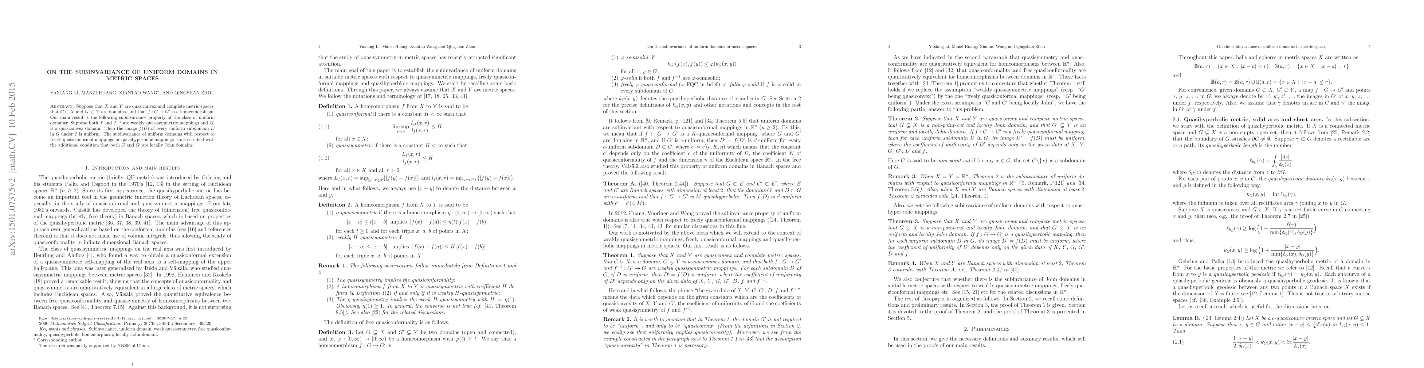 Suppose that $X$ and $Y$ are quasiconvex and complete metric spaces, that $G\subset X$ and $G'\subset Y$ are domains, and that $f: G\to G'$ is a homeomorphism. Our main result is the following subinvariance property of the class of uniform domains: Suppose both $f$ and $f^{-1}$ are weakly quasisymmetric mappings and $G'$ is a quasiconvex domain. Then the image $f(D)$ of every uniform subdomain $D$ in $G$ under $f$ is uniform. The subinvariance of uniform domains with respect to freely quasiconformal mappings or quasihyperbolic mappings is also studied with the additional condition that both $G$ and $G'$ are locally John domains.