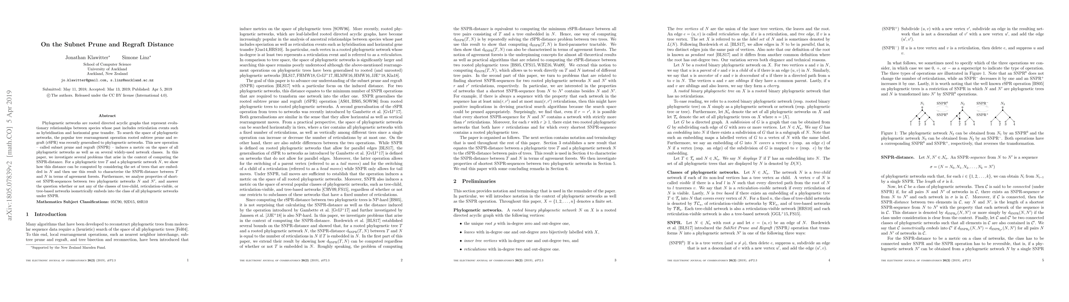 Researchers developed a method to compute the distance between phylogenetic trees and networks using subnet prune and regraft (SNPR), a tree rearrangement operation, and found it can be represented in terms of agreement forests, with implications for analyzing network properties and embedding classes.