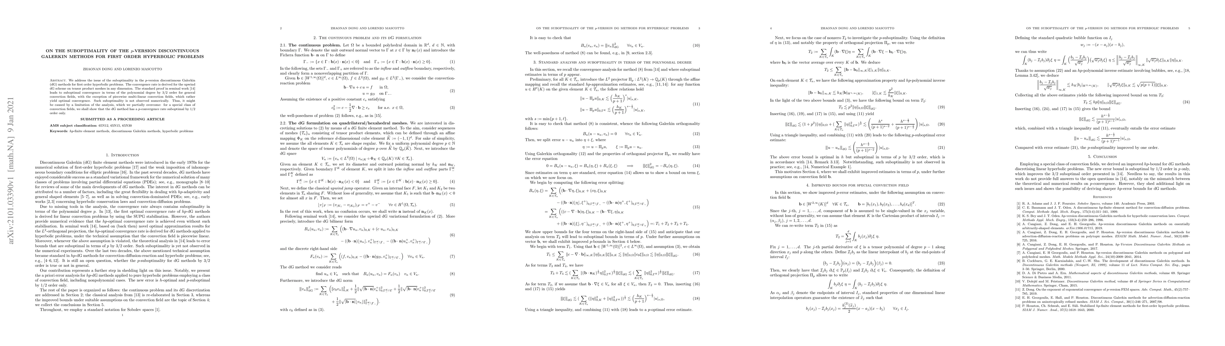 This research identifies suboptimal convergence rates in p-version discontinuous Galerkin (dG) methods for first order hyperbolic problems, particularly in tensor product meshes. The analysis shows that for a specific class of convection fields, the dG method's p-convergence rate is suboptimal by only 1/2 order, rather than the previously observed 3/2 order, which may resolve discrepancies between theoretical predictions and numerical observations.