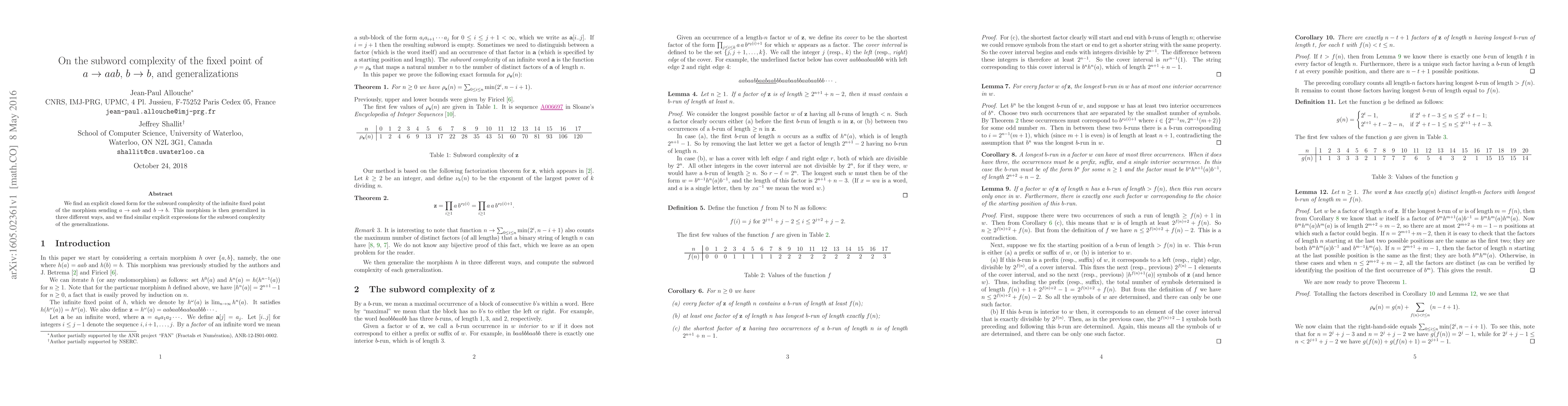 We find an explicit closed form for the subword complexity of the infinite fixed point of the morphism sending $a \rightarrow aab$ and $b \rightarrow b$. This morphism is then generalized in three different ways, and we find similar explicit expressions for the subword complexity of the generalizations.