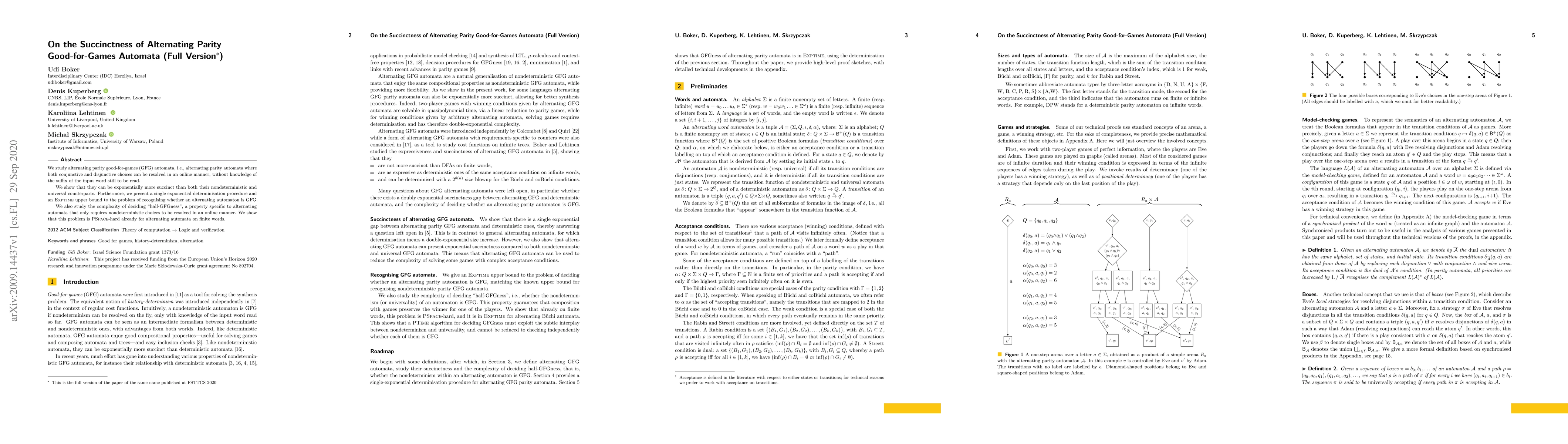 Alternating parity good-for-games automata can be exponentially more succinct than their nondeterministic and universal counterparts, with a single exponential determinisation procedure.