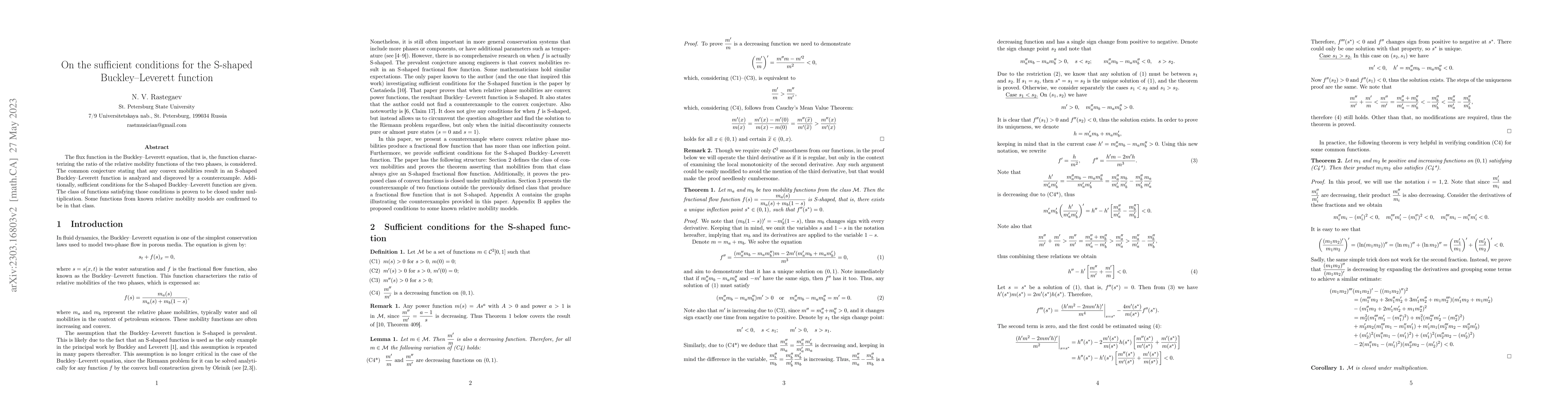 This paper disproves the conjecture that convex mobilities always yield an S-shaped Buckley-Leverett function and provides new sufficient conditions for it. It also proves that functions meeting these conditions form a closed class under multiplication and identifies several known models that fit within this class.