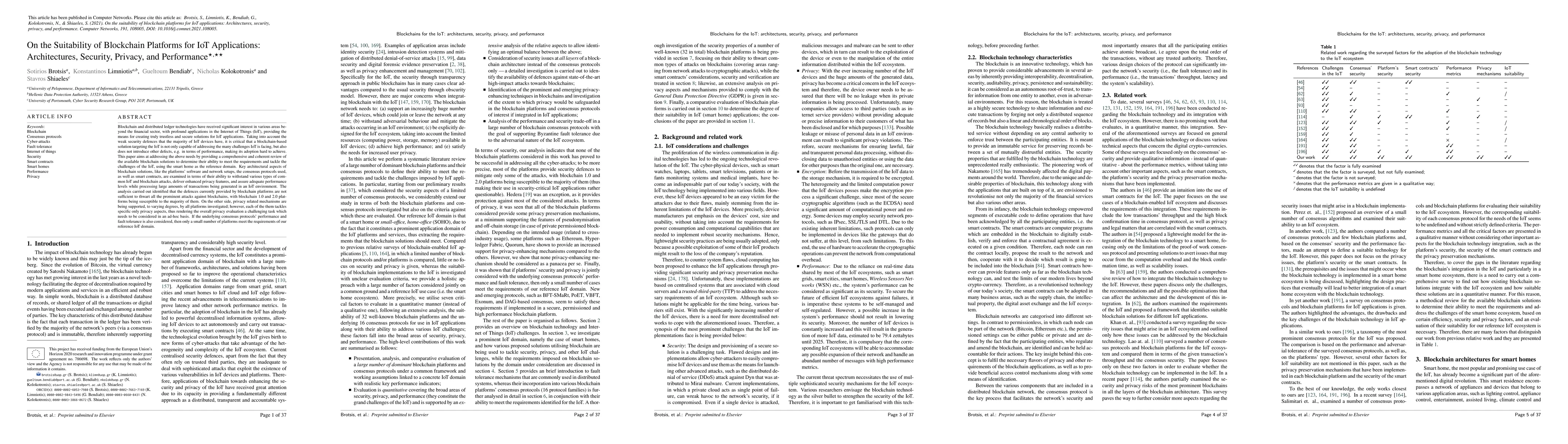 This paper reviews blockchain solutions for IoT applications, assessing their architecture, security, privacy, and performance. While blockchains offer improved security, current platforms struggle with attacks, privacy features are platform-specific, and only a few meet the performance requirements for IoT environments like smart homes.