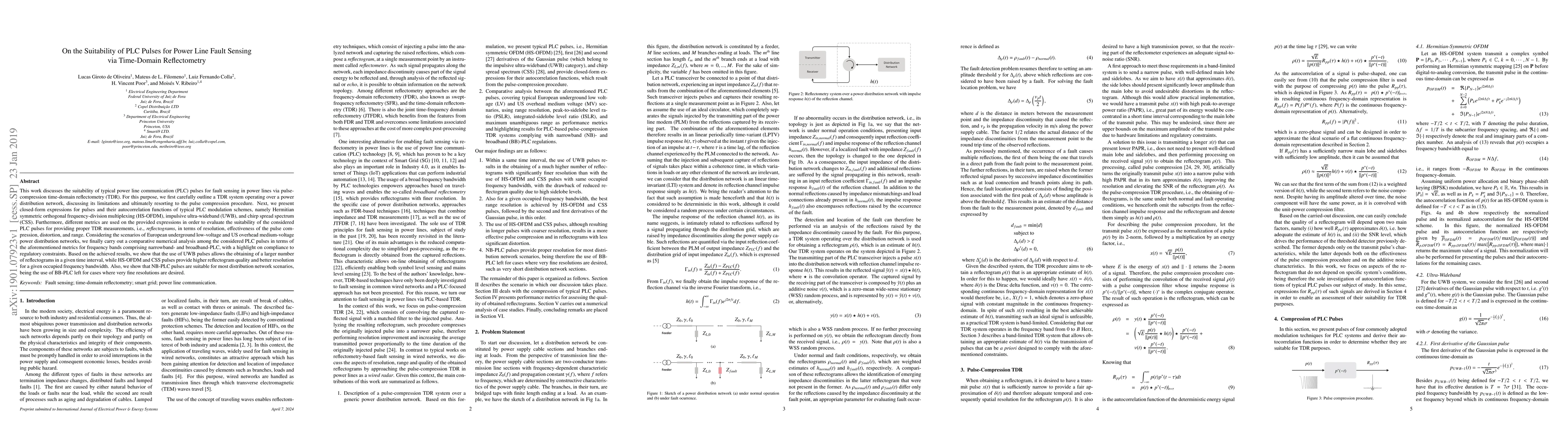 This paper evaluates the effectiveness of various PLC pulses for fault sensing via time-domain reflectometry, finding that impulsive ultra-wideband pulses offer higher reflectogram count, while HS-OFDM and CSS pulses provide better resolution and quality, with narrowband PLC suitable for most scenarios and broadband PLC reserved for high-resolution needs.