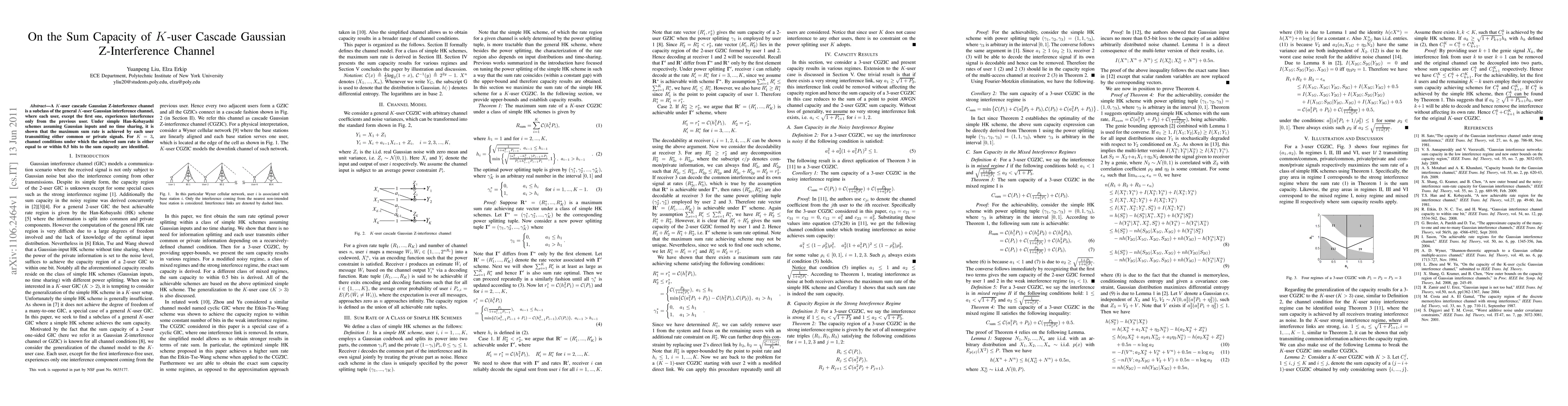 The paper explores the sum capacity of a K-user cascade Gaussian Z-interference channel, demonstrating that optimal maximum sum rate is achieved through either common or private signal transmission. For K=3, it identifies conditions where the sum rate is within 0.5 bits of the sum capacity.