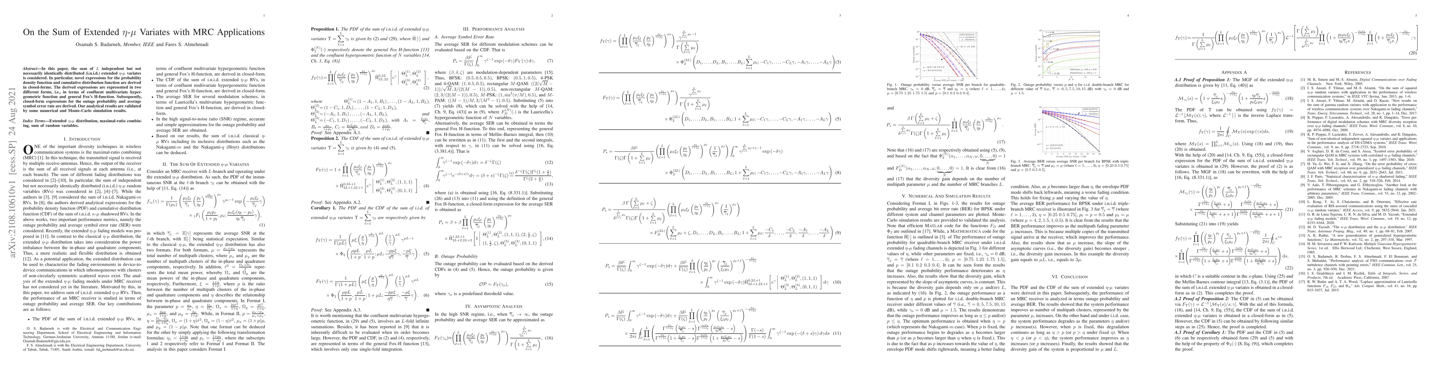 In this paper, the sum of L independent but not necessarily identically distributed (i.n.i.d.) extended $\eta$-$\mu$ variates is considered. In particular, novel expressions for the probability density function and cumulative distribution function are derived in closed-forms. The derived expressions are represented in two different forms, i.e., in terms of confluent multivariate hypergeometric function and general Fox's H-function. Subsequently, closed-form expressions for the outage probability and average symbol error rate are derived. Our analytical results are validated by some numerical and Monte-Carlo simulation results.