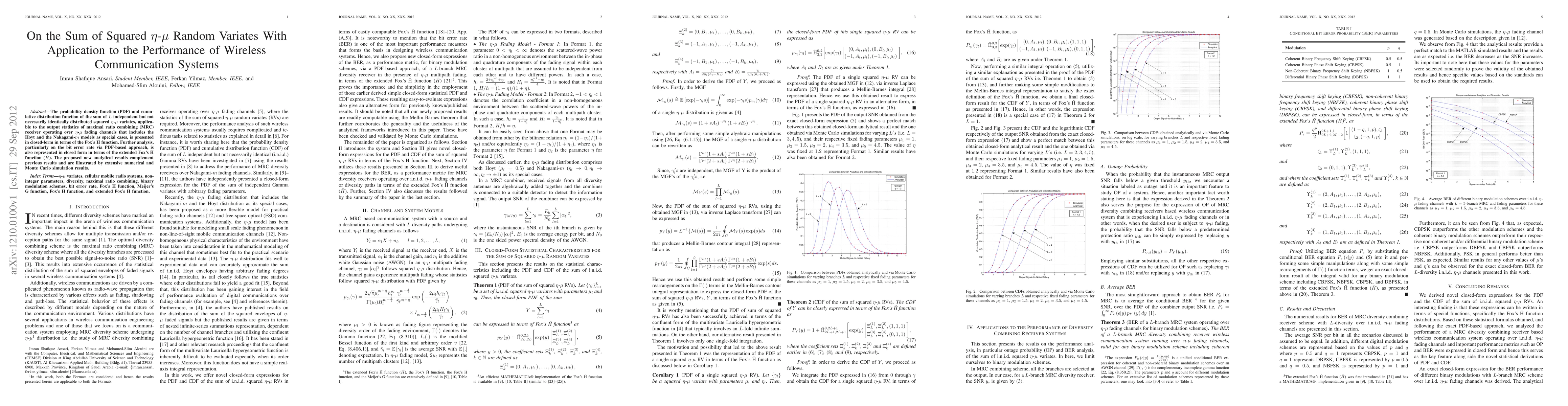 This paper presents a closed-form solution for the probability density and cumulative distribution functions of the sum of squared \eta-\mu random variates, relevant to maximal ratio combining in \eta-\mu fading channels. It also provides a closed-form bit error rate analysis using the extended Fox's H-bar function, validated by numerical and Monte Carlo simulations.