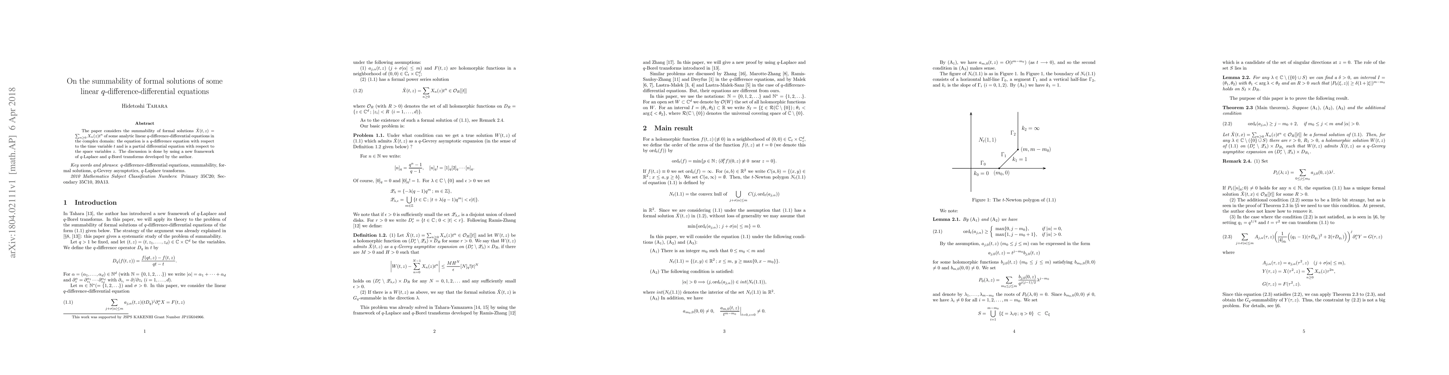 Summary: This paper demonstrates the summability of formal solutions for linear q-difference-differential equations through the application of q-Laplace and q-Borel summation techniques. The methods used provide a rigorous framework for analyzing these complex mathematical structures.
