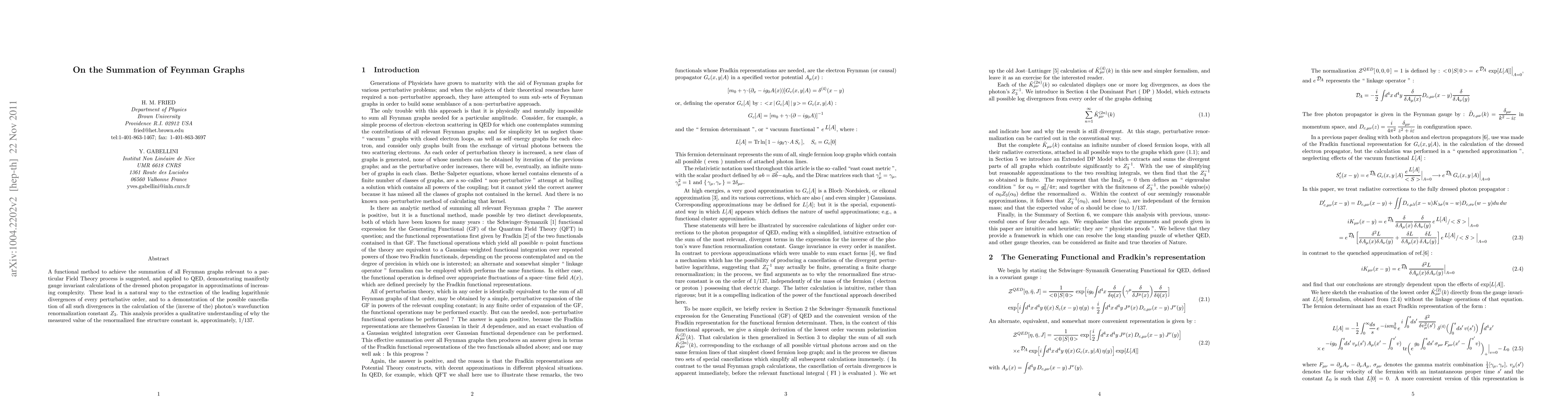 A functional method to achieve the summation of all Feynman graphs relevant to a particular Field Theory process is suggested, and applied to QED, demonstrating manifestly gauge invariant calculations of the dressed photon propagator in approximations of increas- ing complexity. These lead in a natural way to the extraction of the leading logarithmic divergences of every perturbative order, and to a demonstration of the possible cancellation of all such divergences in the calculation of the (inverse of the) photon's wavefunction renormalization constant Z3. This analysis provides a qualitative understanding of why the measured value of the renormalized fine structure constant is, approximately, 1/137.