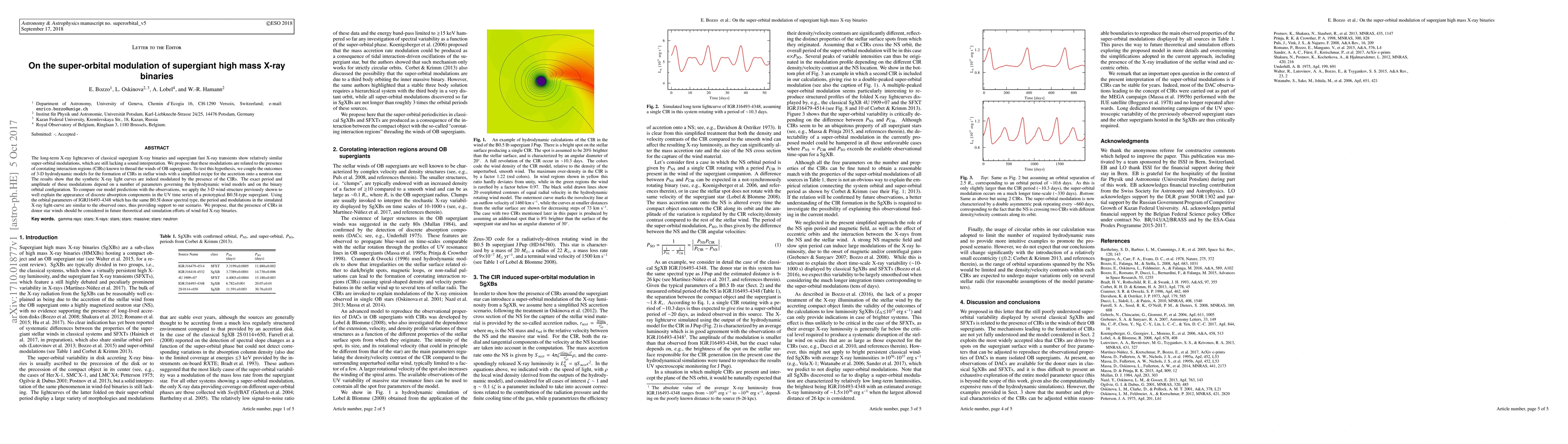 Research suggests that corotating interaction regions in star winds cause super-orbital modulations in high-mass X-ray binaries, which is supported by simulations of a similar system, IGRJ16493-4348.