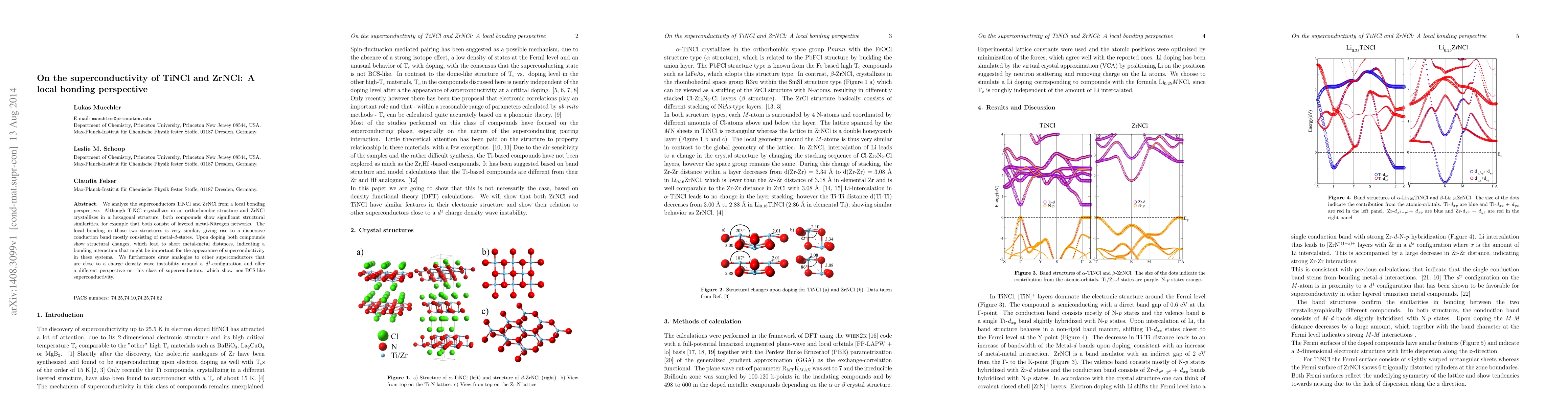 We analyze the superconductors TiNCl and ZrNCl from a local bonding perspective. Although TiNCl crystallizes in an orthorhombic structure and ZrNCl crystallizes in a hexagonal structure, both compounds show significant structural similarities, for example that both consist of layered metal-Nitrogen networks. The local bonding in those two structures is very similar, giving rise to a dispersive conduction band mostly consisting of metal-d -states. Upon doping both compounds show structural changes, which lead to short metal-metal distances, indicating a bonding interaction that might be important for the appearance of superconductivity in these systems. We furthermore draw analogies to other superconductors that are close to a charge density wave instability around a d 1 -configuration and offer a different perspective on this class of superconductors, which show non-BCS-like superconductivity.