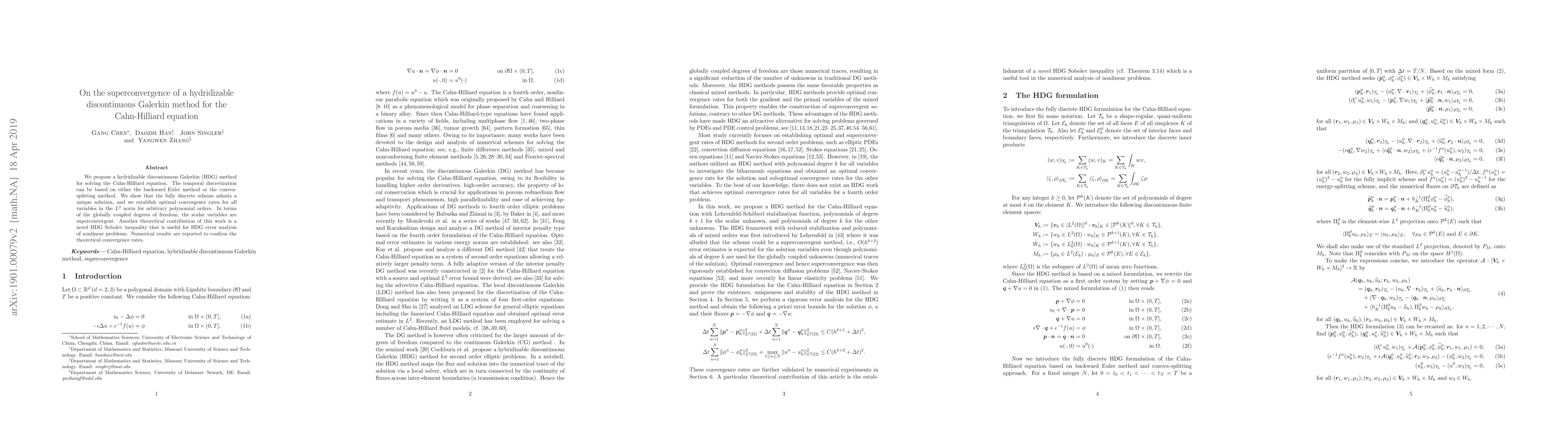 This paper introduces a hydridizable discontinuous Galerkin (HDG) method for the Cahn-Hilliard equation, demonstrating optimal convergence rates and superconvergence of scalar variables. A new HDG Sobolev inequality is also presented for error analysis of nonlinear problems, supported by numerical results.
