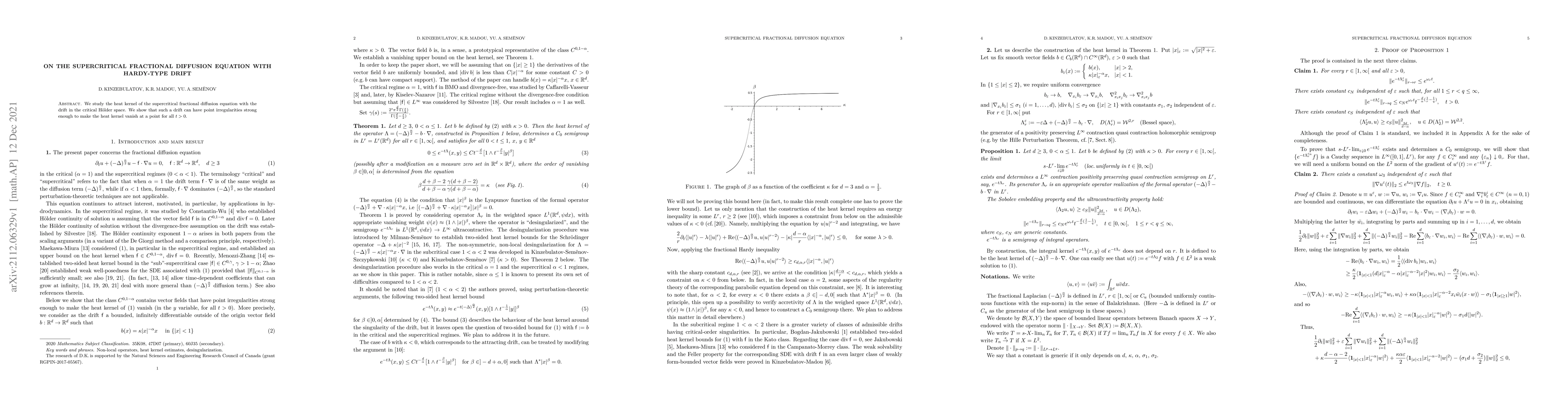 We study the heat kernel of the supercritical fractional diffusion equation with the drift in the critical H\"{o}lder space. We show that such a drift can have point irregularities strong enough to make the heat kernel vanish at a point for all $t>0$.