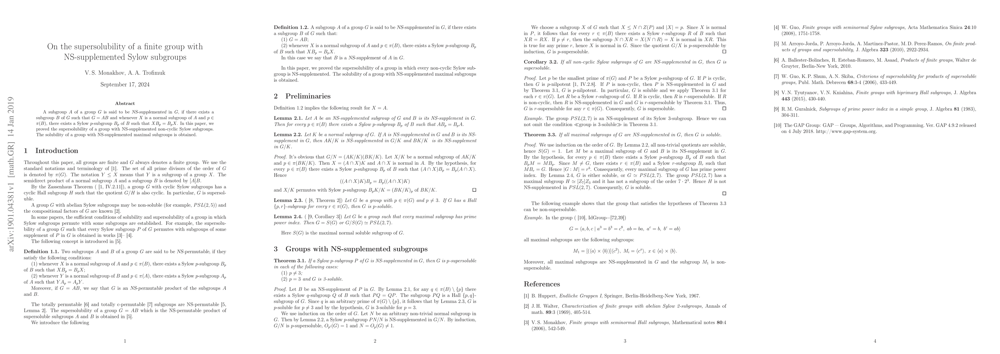 This paper proves that groups with NS-supplemented non-cyclic Sylow subgroups are supersoluble, while groups with NS-supplemented maximal subgroups are solvable.