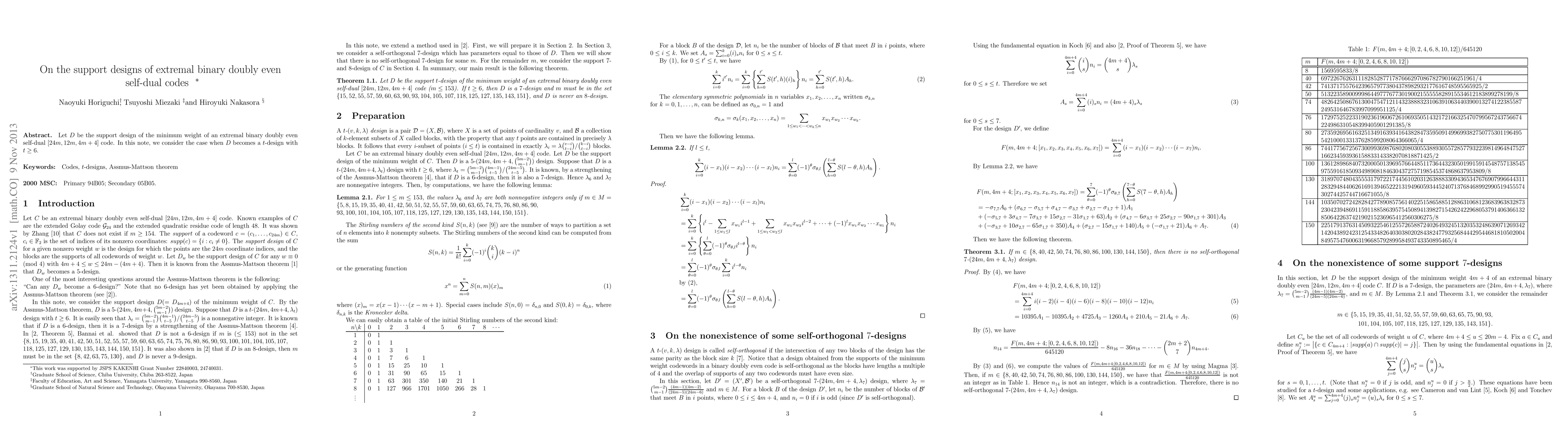 Let D be the support design of the minimum weight of an extremal binary doubly even self-dual [24m,12m,4m+4] code. In this note, we consider the case when D becomes a t-design with t \geq 6.
