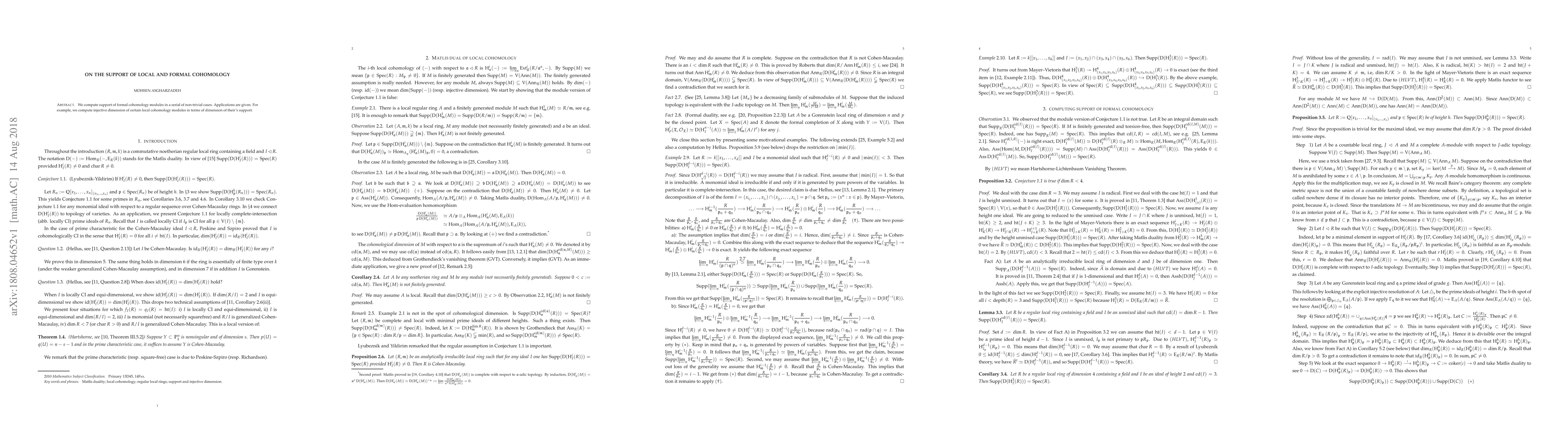 The paper computes the support of formal cohomology modules in various non-trivial cases and applies these findings to determine the injective dimension of specific local cohomology modules in relation to their support dimensions.