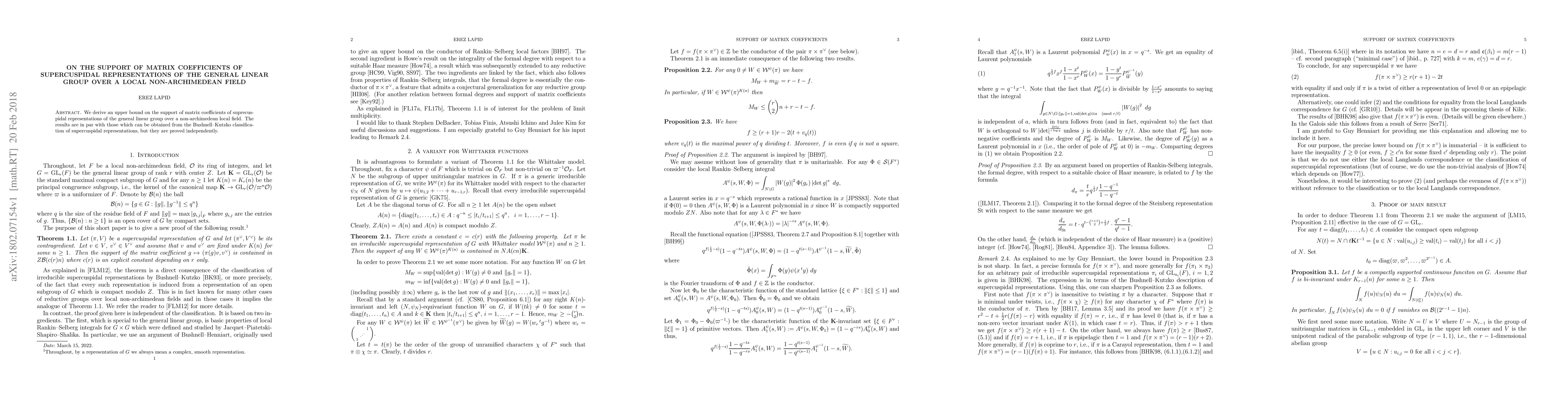 This paper establishes an upper bound for the support of matrix coefficients of supercuspidal representations of the general linear group over a local non-archimedean field, proving results independently that align with those from the Bushnell-Kutzko classification.