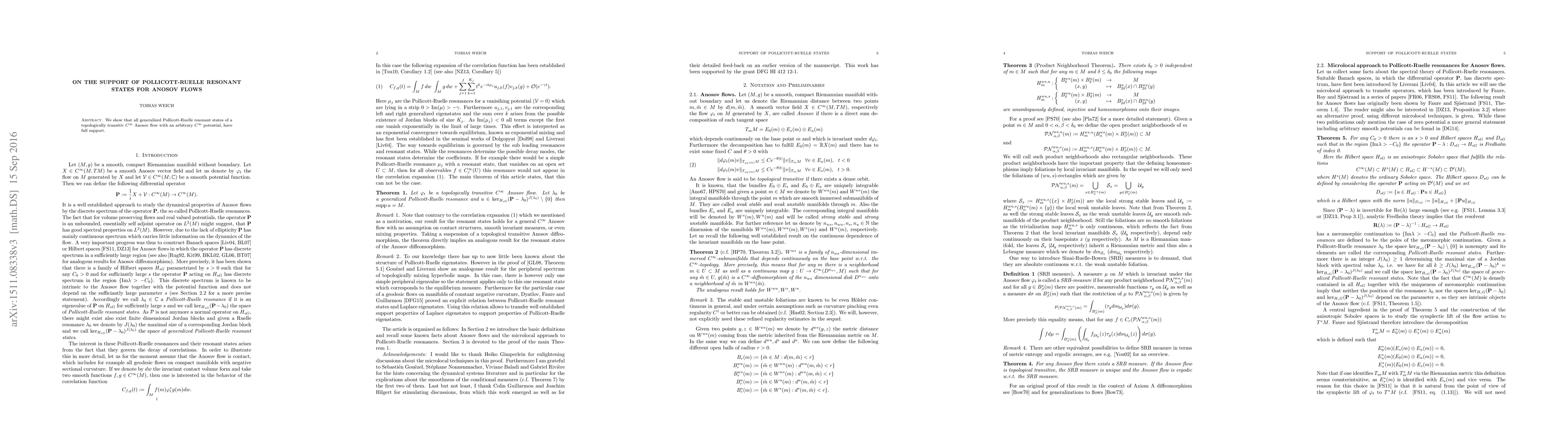 We show that all generalized Pollicott-Ruelle resonant states of a topologically transitiv $C^\infty$-Anosov flow with an arbitrary $C^\infty$ potential, have full support.