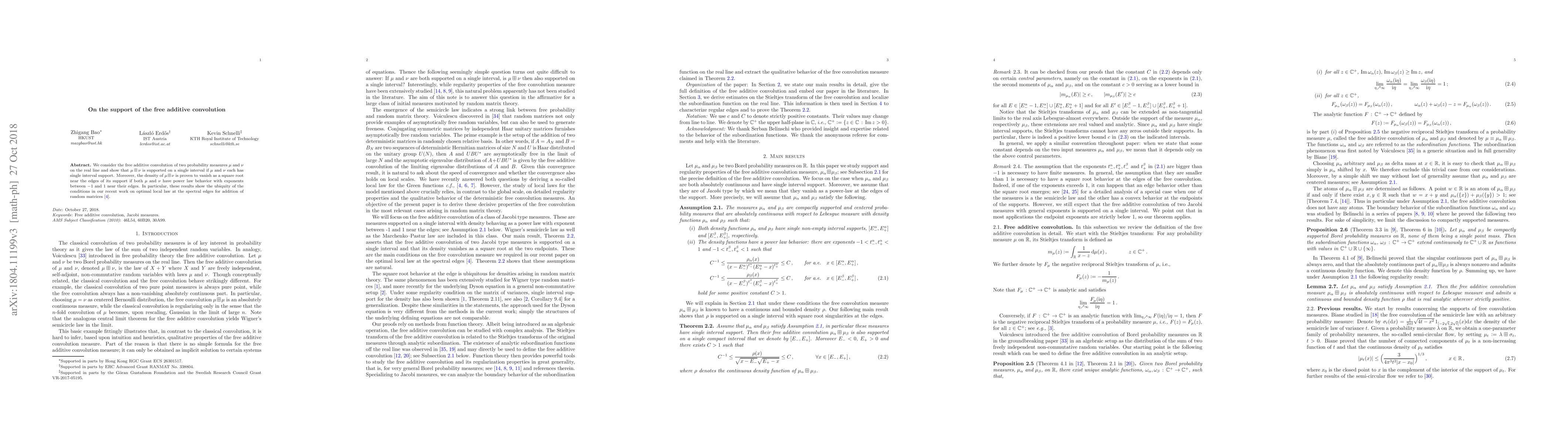 This paper demonstrates that the free additive convolution of two probability measures with single interval support results in a convolution supported on a single interval. It also proves that under certain power law behaviors near the edges, the density of the convolution vanishes as a square root near these edges.