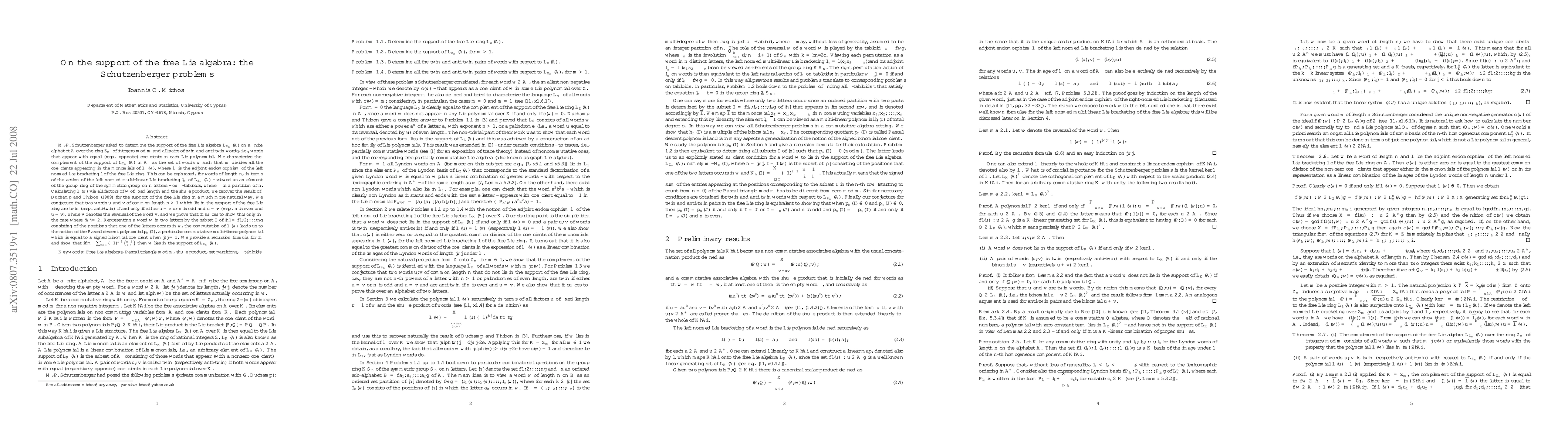 This paper studies Schützenberger's problems related to the support of the free Lie algebra ${mathcal L}_{{mathbb Z}_{m}}(A)$ over a finite alphabet $A$ with coefficients in ${mathbb Z}_{m}$. Utilizing the adjoint endomorphism $l^{*}$ and the shuffle product, it recovers Duchamp and Thibon's (1989) result for the support of the free Lie ring more naturally. The authors rephrase the problems in terms of the left normed multi-linear Lie bracketing's action on $lambda$-tabloids, leading to the introduction of the 'Pascal descent polynomial' $p_{n}(I)$. This polynomial provides a sufficient condition for words $w$ to lie in ${mathcal L}_{{mathbb Z}_{m}}(A)$, particularly for $|A| = 2$, and offers a conjecture for twin and anti-twin words in the free Lie ring.
